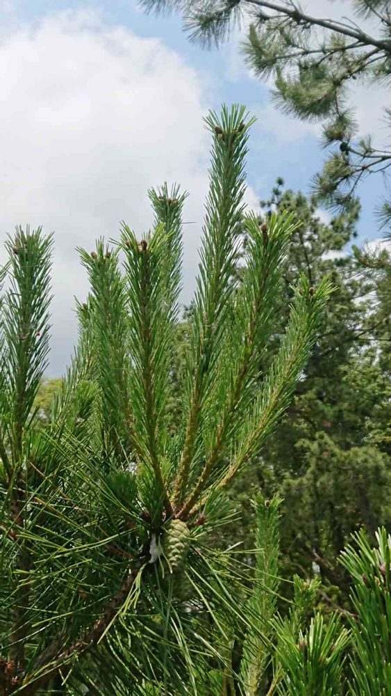 ソラの日 棒の日 に二回参加していた黒松の新芽 根元に松ぼっくり 先っぽの今年の松ぼっくりは新しい新芽が伸びるため 横を向きます。🤗🎵