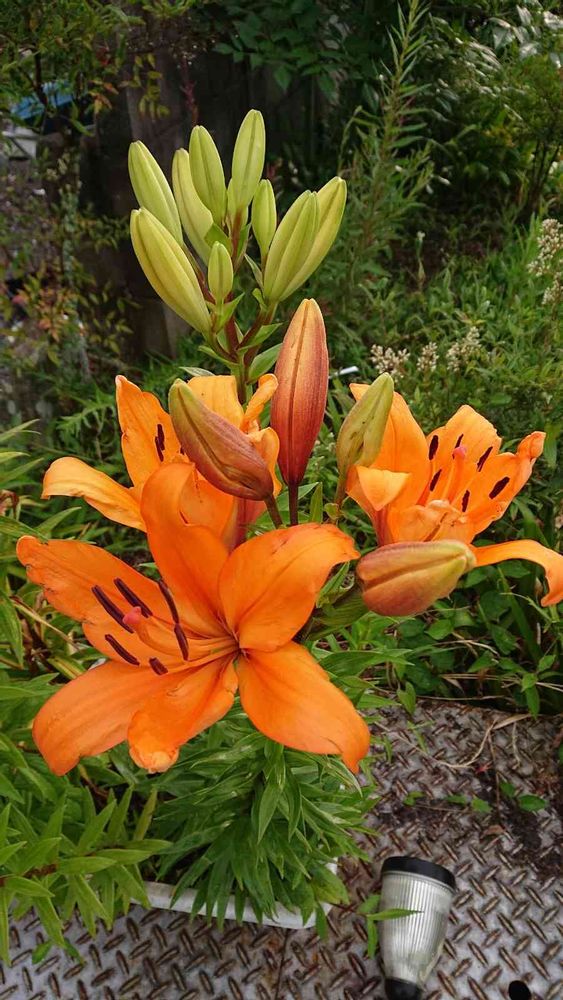 おはようございます😃。大きくて、たくさんの百合、きれいなオレンジ🧡は元気が出ますね。百合は咲くまで何色かが楽しみでいいですね^o^。