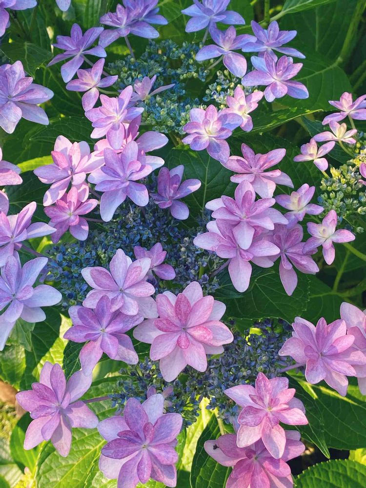 ダンスパーティ たくさん咲くから地植えでも、しんなりしちゃうんだね💞 🏠もこの紫陽花 買った時は、ピンクだったのに、地植えにしたら、紫系になっちゃった〜☺︎♡*°