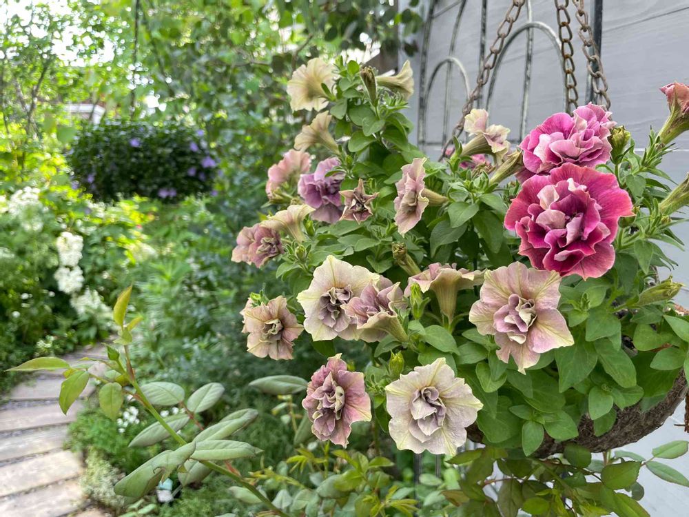 素敵色のペチュニア姉妹、ハンギングから溢れてきますね💓❤️🎶