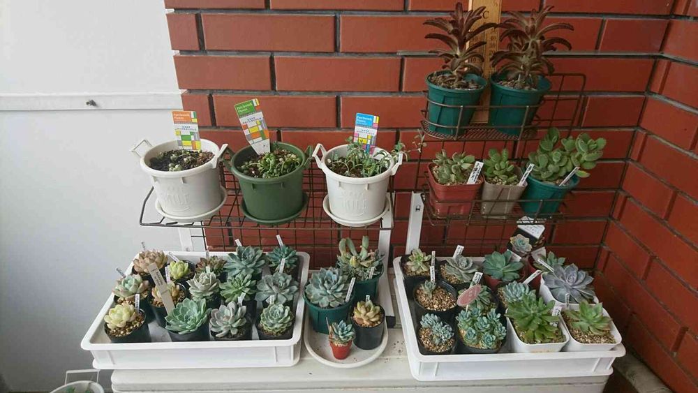 室外機の上の多肉たち日当たりを考えて入れ換えました✨