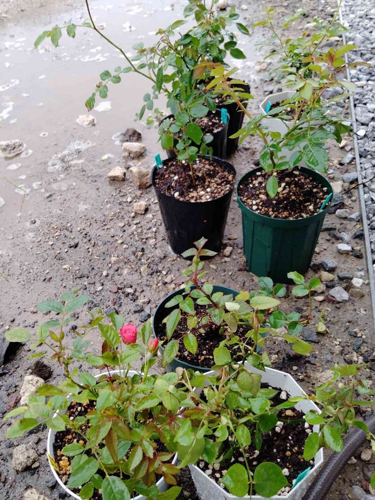 ミニバラ、購入した時に1株ずつに分けた子達も、だいぶ大きくなってきたので植え替えました。今のところ脱落した子はいない様子です。