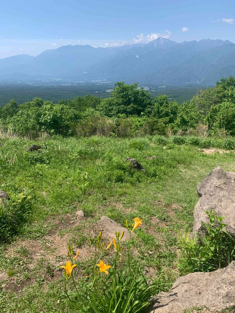 遠方にみえる雪を抱いた山は、甲斐駒ヶ岳です🏔