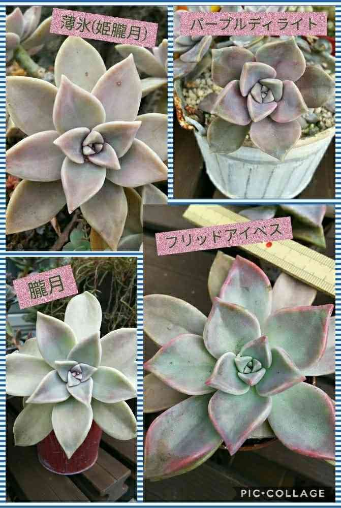 同じグラプトベリアの先住お多肉、朧月・初恋・パープルディライト と並べてみた🌿🌿🌿🌿