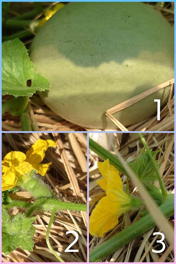 2️⃣の画像が雌花最初から小メロンが付いていて受粉完了で大きくなるのだ‼️