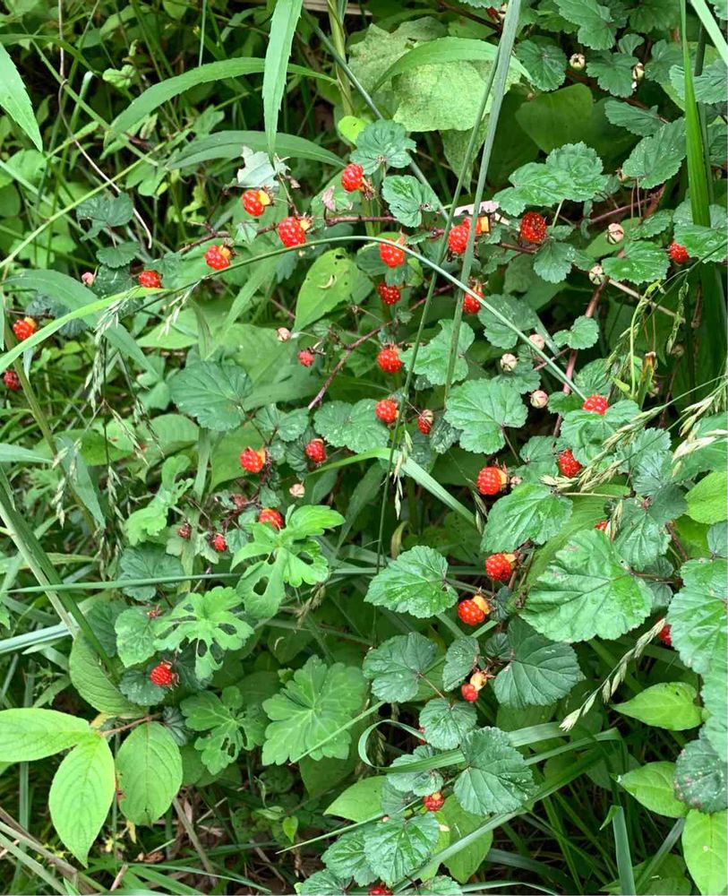 ワンコがグングン引っ張るのでいつものコースを外れると、キイチゴを発見🍓
