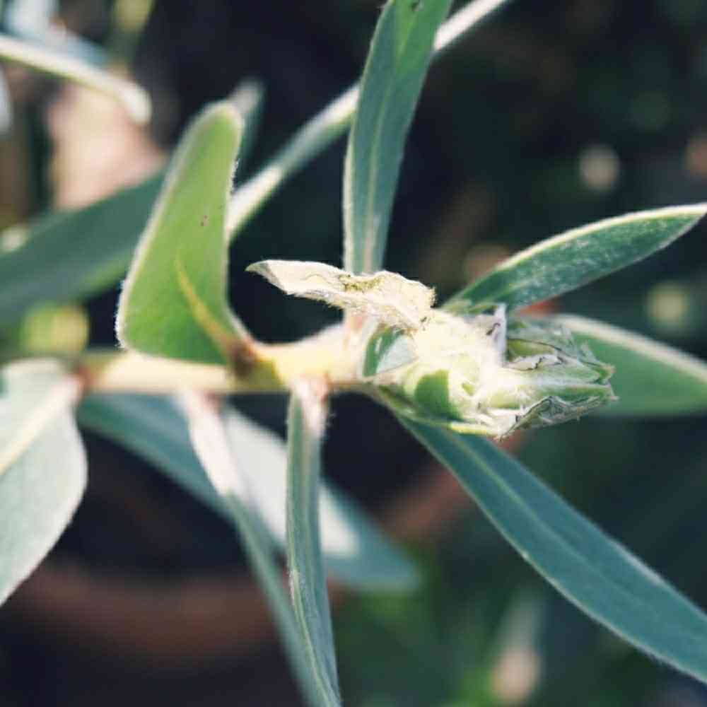 リューカデンドロンなんかも同じ感じで…新芽がネバネバの糊で固められたようになっていて、剥がして広げると中から…🐛が出てきました!😱