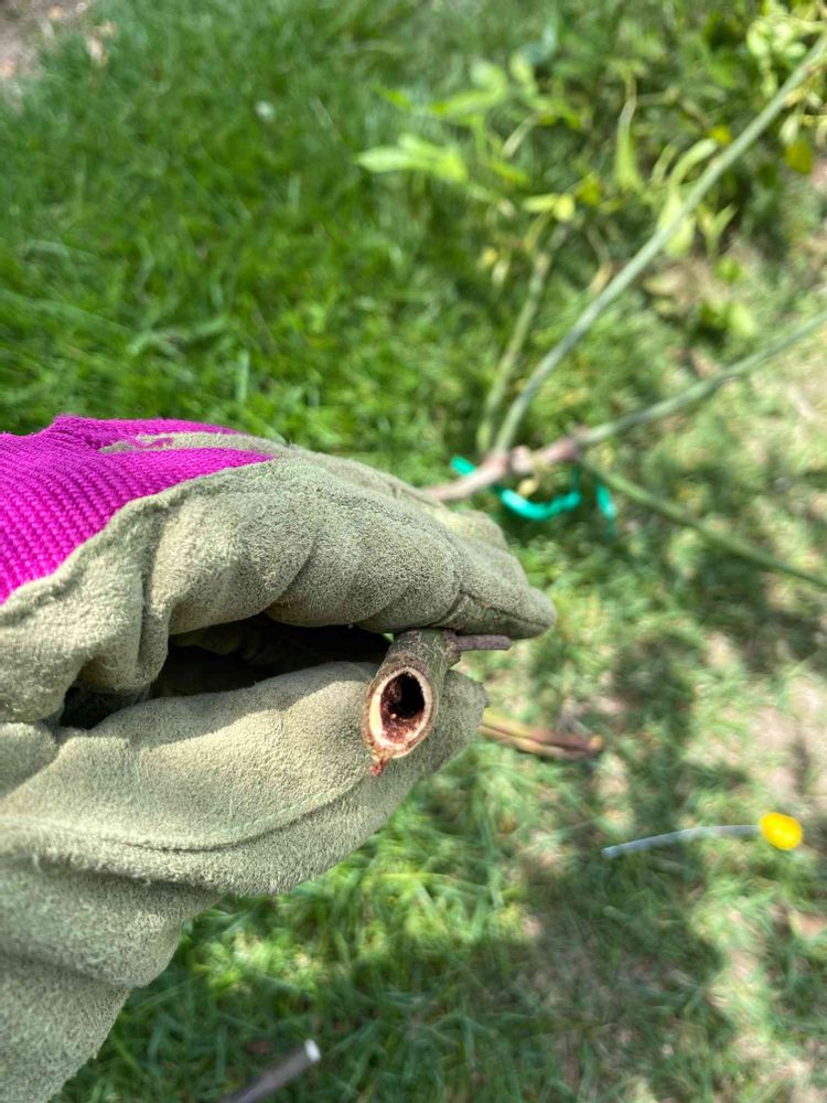 今朝は糞は出てなかったのですが、シュート出てきてるし 枯れ込んできたのが 1番古い枝だったので 被害拡大しないように 虫の確認を兼ねて 剪定しました。