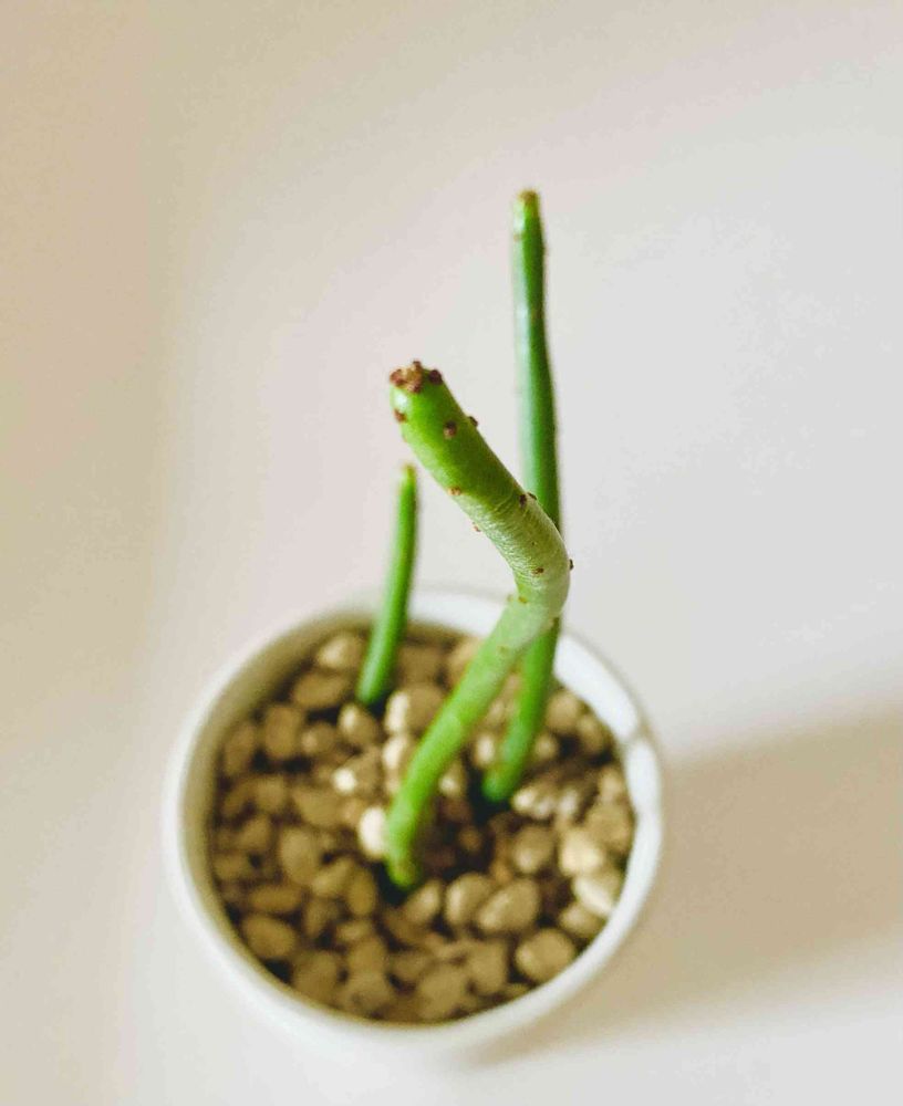 ヒロミンさんから貰って水差ししていたオンコクラータが6月になってニョキニョキ根っこを出しましてめでたく鉢上げ👏🎊