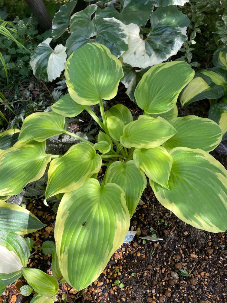やった〜🎶アサギさんのおかげで不明なホスタの名前分かった👍💓このブーケに似ている🌿だけど葉先の丸み(ちょいと独特だよね?)名前が思い出せなくて……のホスタがいたのですが……とても似てるのでデルタドーンさんかも知れない🤔💓夜にでもアサギさんに見てもらいたいです。