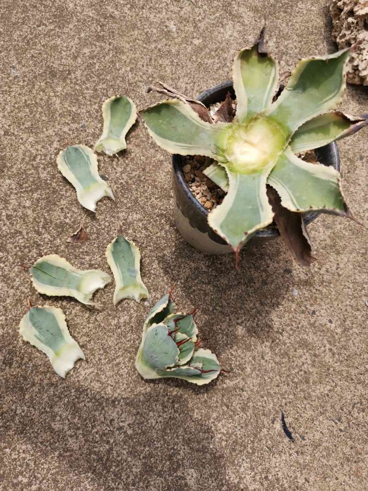 アガベ葉挿しで検索したらアメリカーナが成功していました!一緒に葉挿ししたアテナータはダメだった模様…