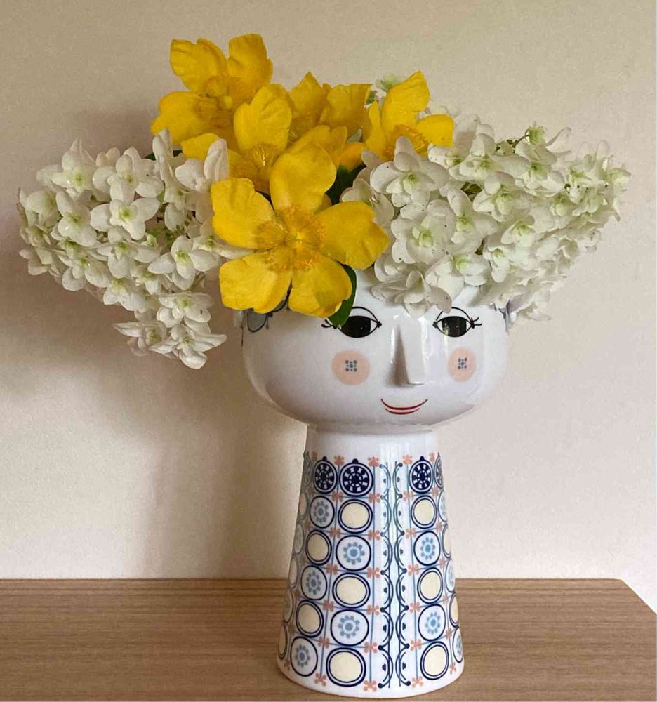庭にあるイメージで、元気さを入れたかったので、パッと黄色をポイントに〜