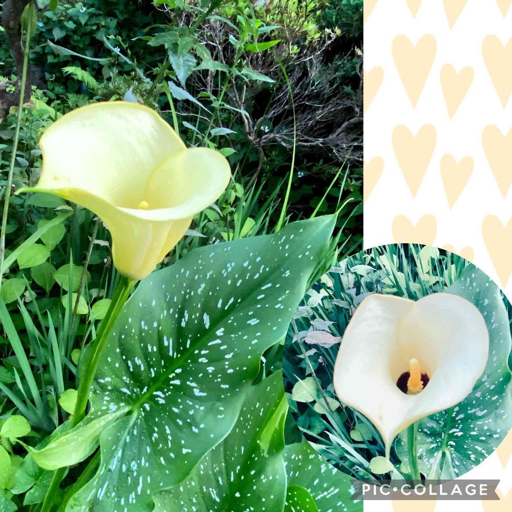 地植えの淡いクリーム色のカラーが咲き出しました。