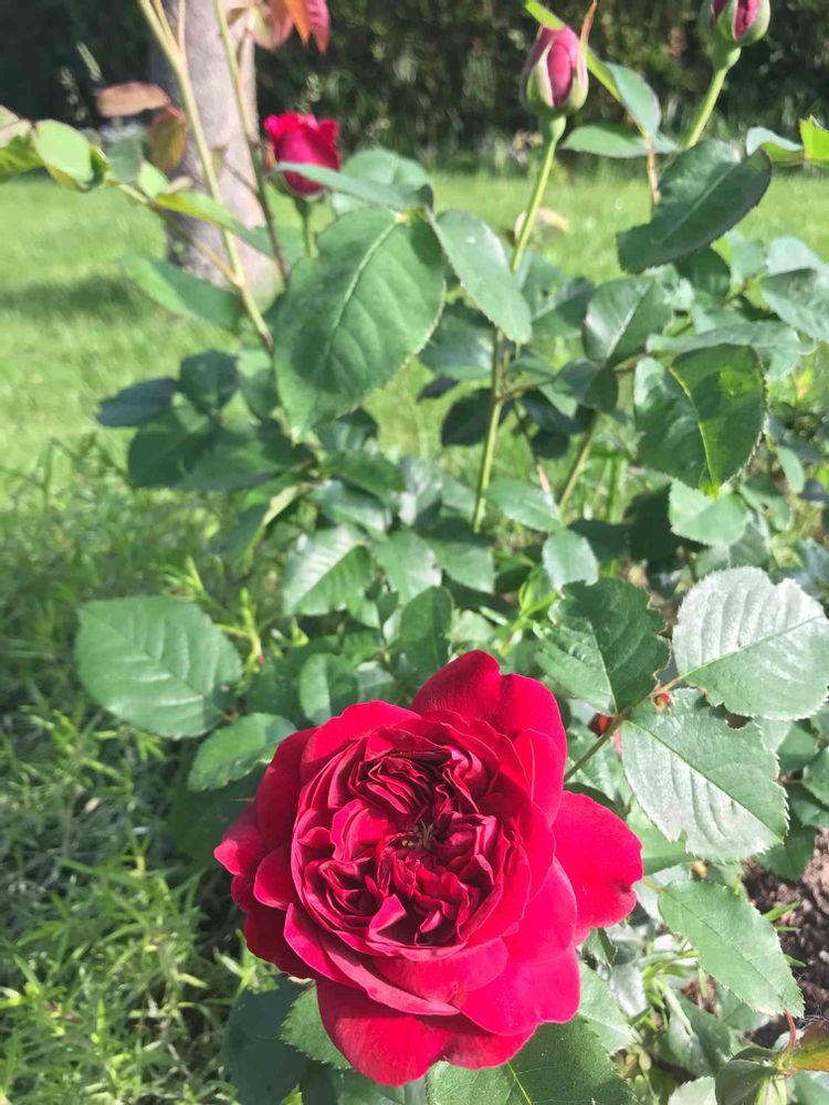 このコロナで仕事も無くなり、その分ガーデニングにエネルギーが行き、薔薇を13種追加しました。殆どが地植えで。この薔薇も今年初めての開花で悦びをくれました。芝はちょっと伸び気味なので今日夫が芝刈りしてくれます。そしたらもっと綺麗だったかもしれません😅