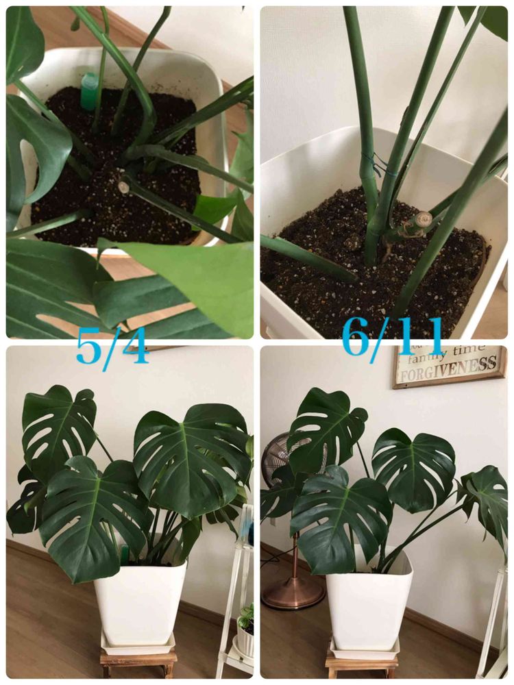 先程投稿した、5/4に剪定したモンステラの上の部分です。