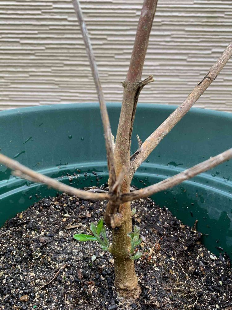 その後、余っていた肥料を適当にあげたらびっくりするくらい新しい葉がついたのですが、そのあと寒過ぎて再び葉が落ちてしまって、最近まで木の枝だけの姿でした。この間何もせず放置です…