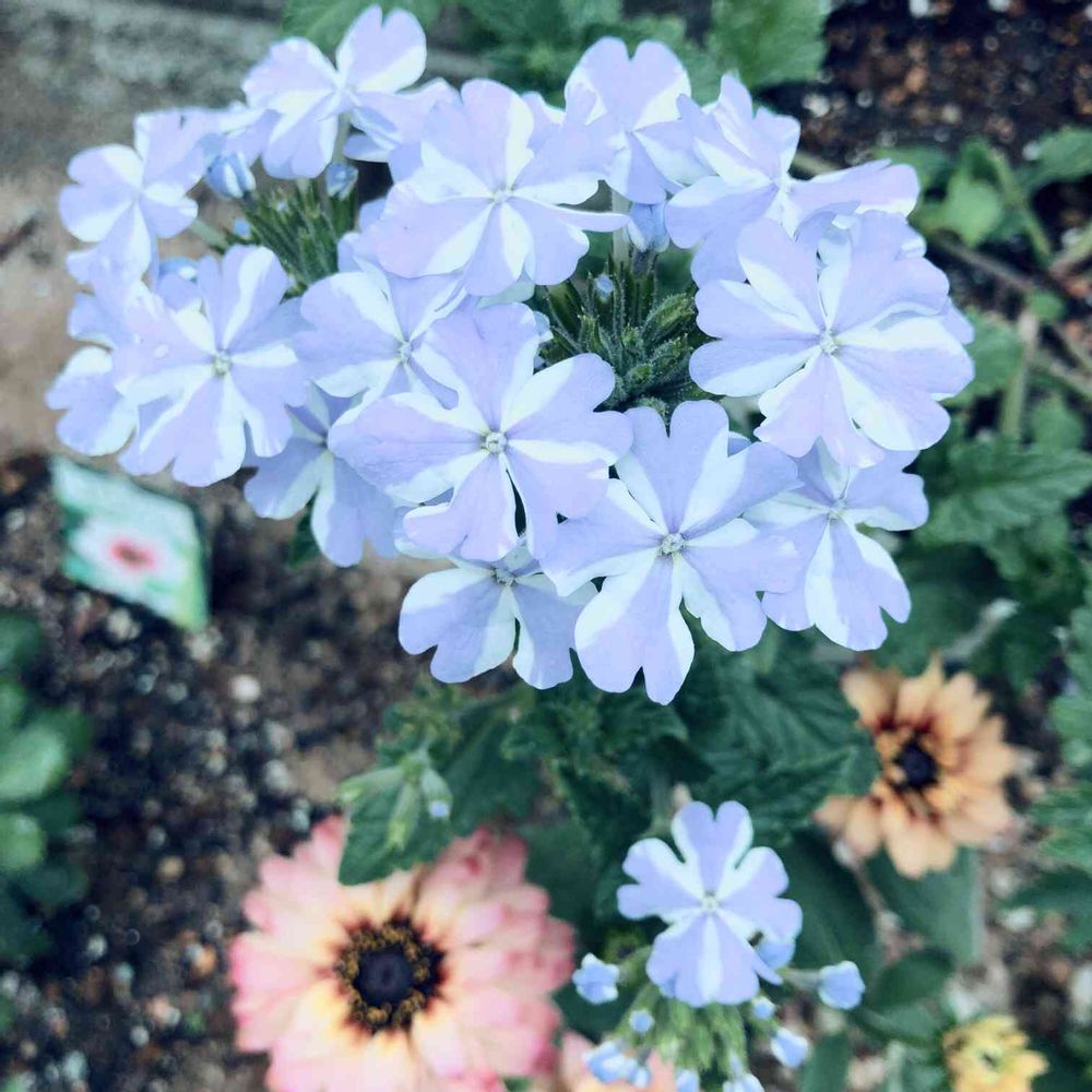 スーパーベナ アイストゥインクル。色に魅せられて連れて帰りました。ちょっと形が崩れて弱ってもいたので、咲いていたお花は切って様子をみてたらとうとう咲いてくれました。嬉しい🥰