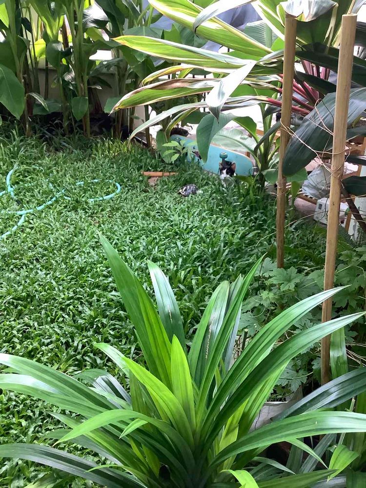 最近、遊びに来るようになった野良ちゃん、触らしてくれないんだけど、サカリなのか、凄い音量で泣き叫び庭でおいたしています😹 今日はウチの亀🐢叩いて猫パンチしてたw