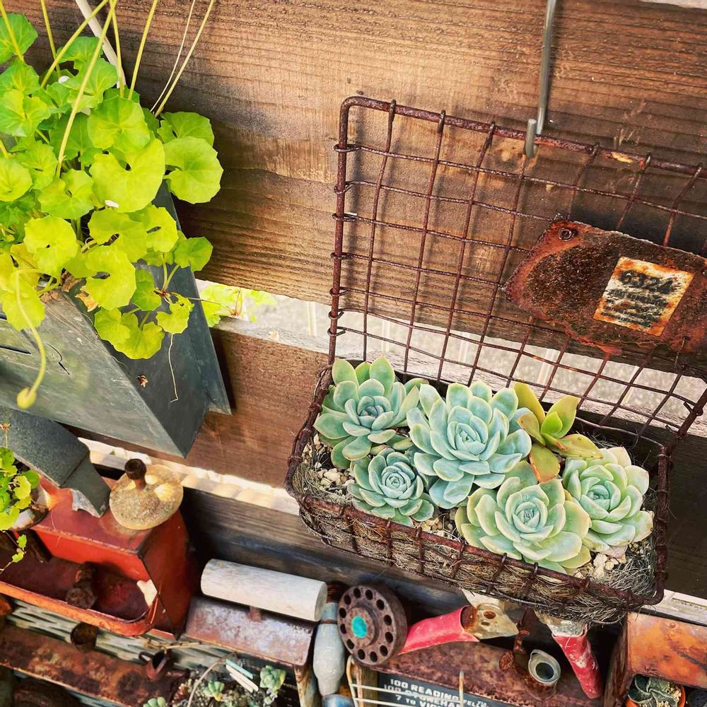 水色のエケベリアがサビサビに映えるね❤しかも涼しげ𓂃𓂂🍃