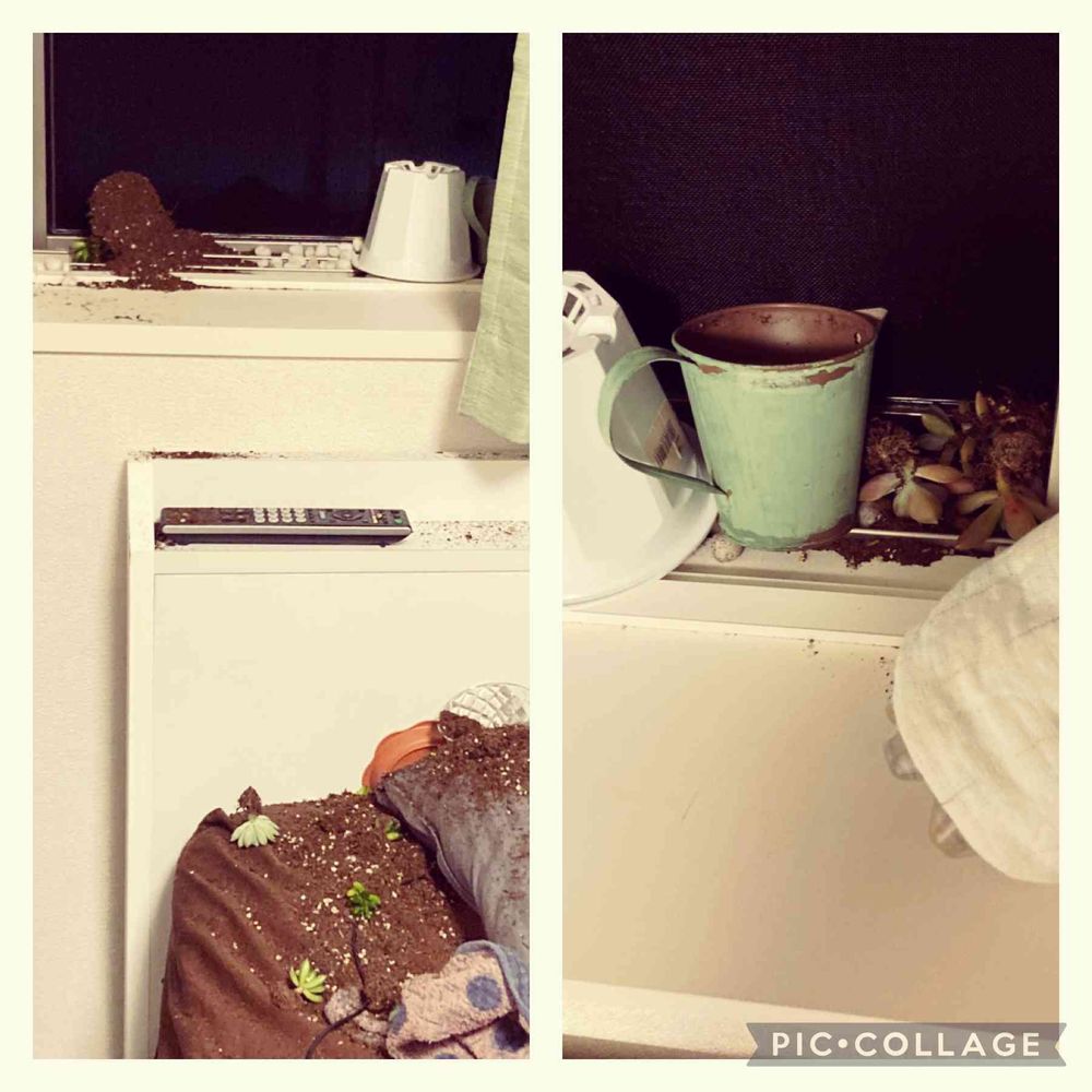 窓辺,多肉植物,台風の後の投稿画像