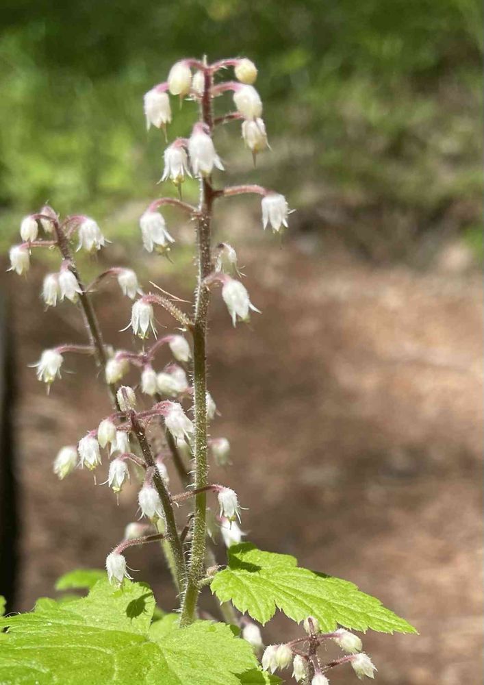 これも入笠山で、湿原からお花畑に行く途中で見つけた。近くにはピンクのクリンソウが群れていて、目を奪われていると見落としやすい。小さな白い花のまばらな総状花序に存在感があったおかげで目に留まった。白い花弁に見えるのが、実は五裂した萼片。本当の花弁は萼片より長い糸状で五枚。写真を拡大するとわかる。花は下から咲き上がるようだ。
