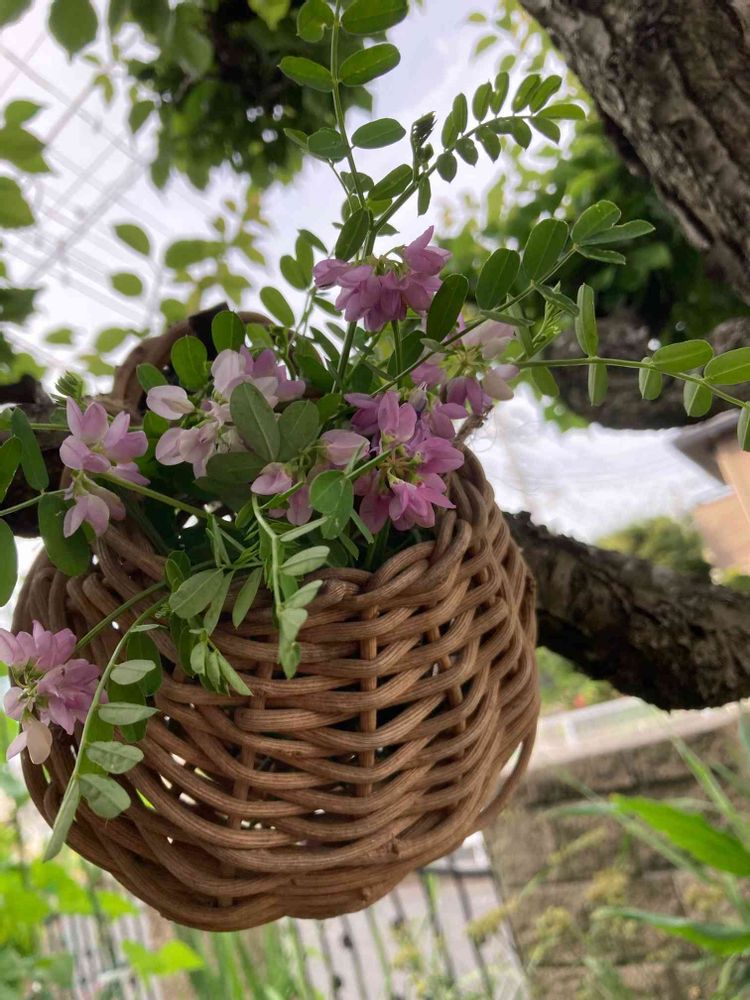 籐の花器が涼しく、お花が爽やかに生けられていますね💕