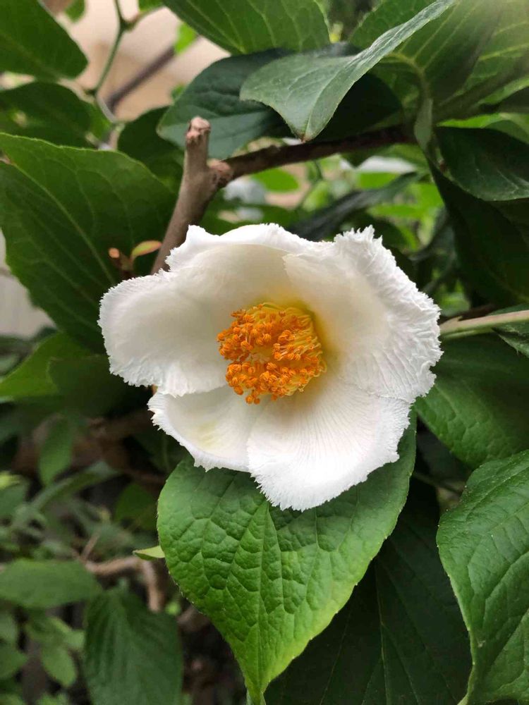 夏椿が静か〜に咲いていました今日は曇りかなー☁️