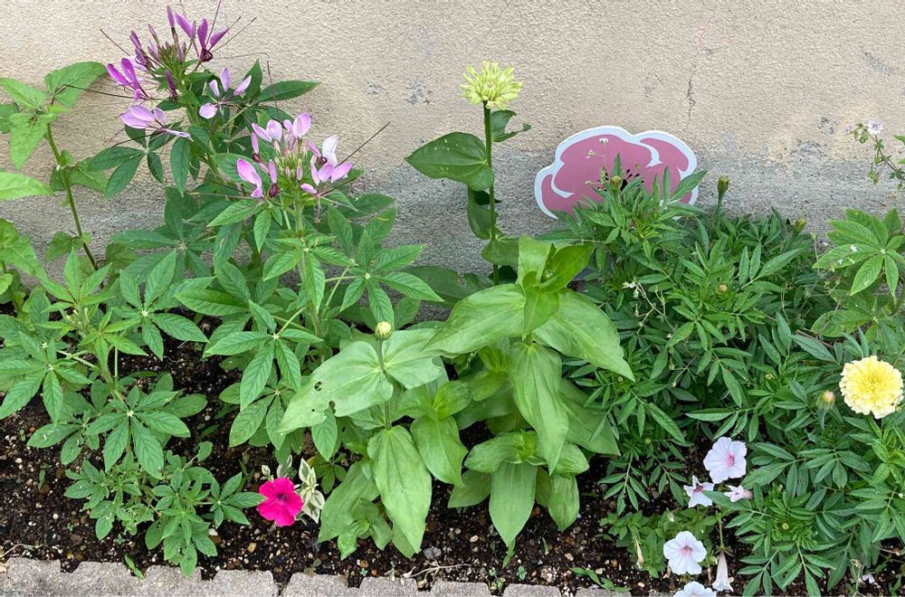 種まきクレオメが咲き始めて益々賑やかになって来た東側花壇♪♪✨