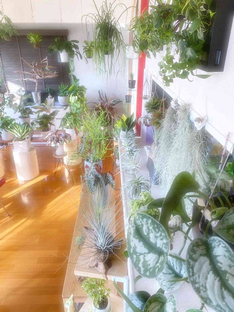 リビング周囲3分の2が、植物園状態でその真ん中にテーブルがあり、そこに座って眺める景色は、癒され感ありますよ❤️🤗