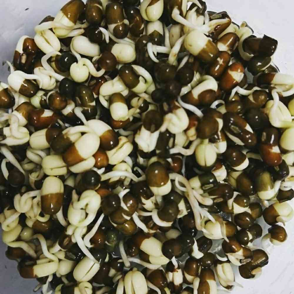 black gram sprouts 黒緑豆 ブラックマッペ。発芽させると、色合いがかわいい。