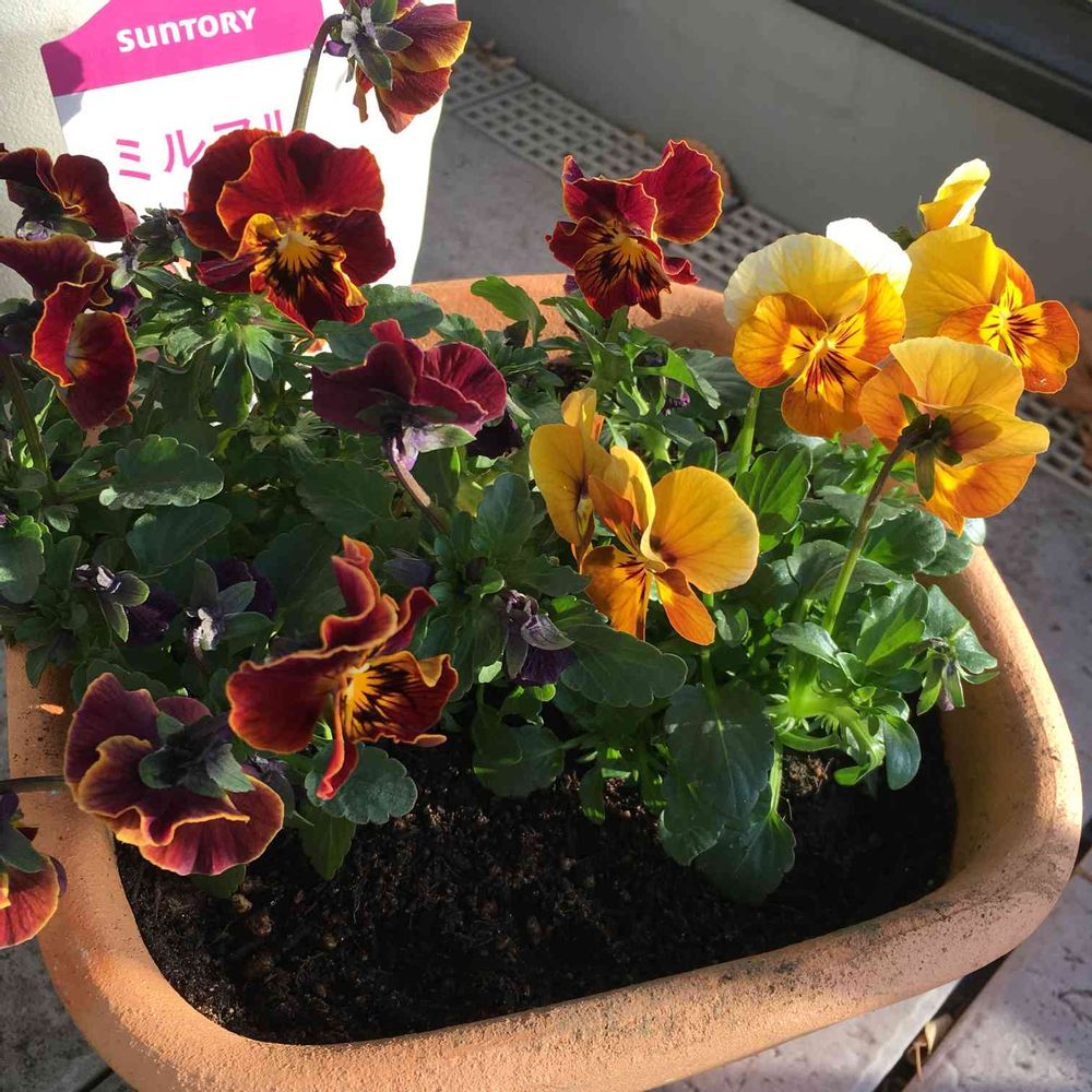 暖色系のビオラを寄せ植えしたかったので、色々と探してました。