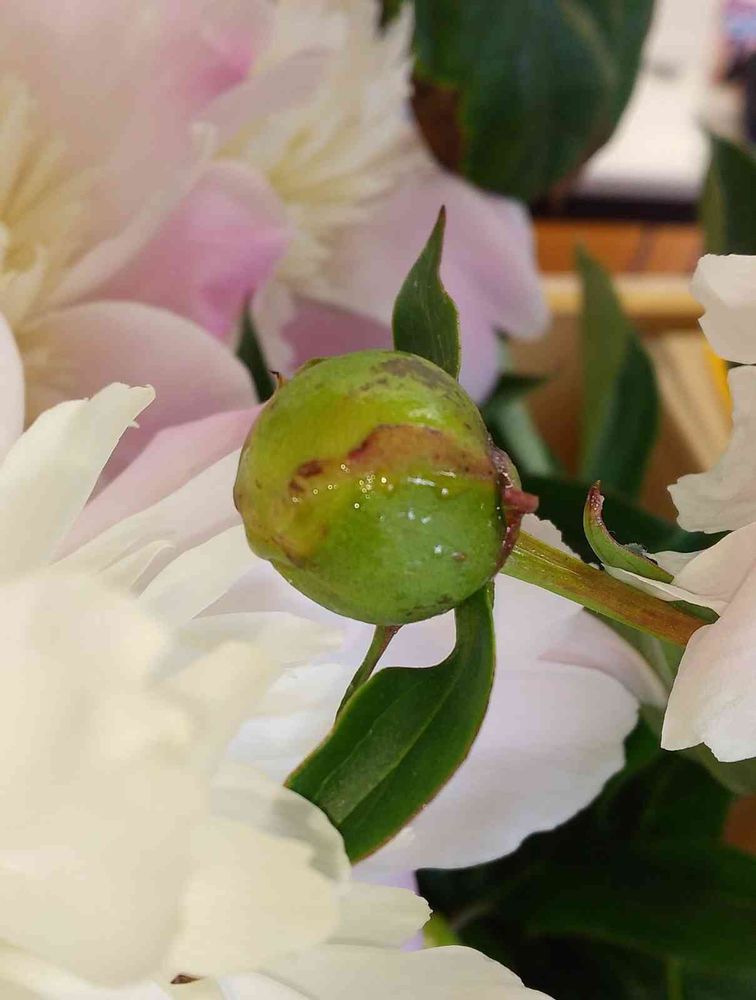 少し前にいただいた芍薬、つぼみから蜜が滴っていて、舐めたら甘かった…