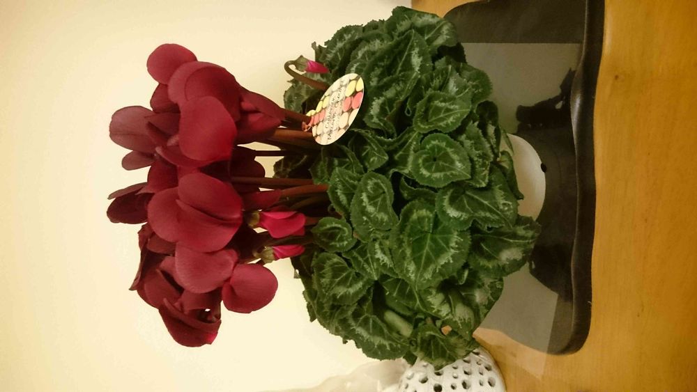2017.11.26 一関市厳美町の佐藤さんのシクラメン。今年の新色、「マカロンショコラ」です♪この深い紅色にくらりときましたよ。マカロンショコラってちょっと甘い名前がついてるけど、佐藤さん曰く「マカロンっていうよりは熟成されたワインだよね」はい、同感です!大事に育てますね♪