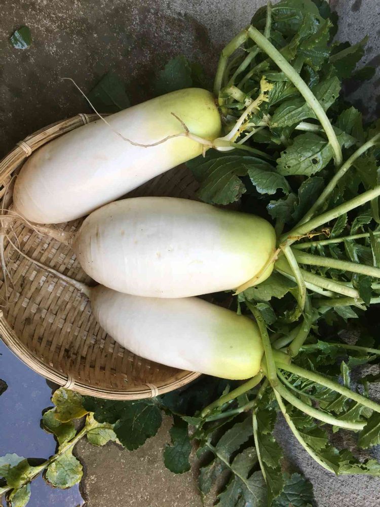 20センチくらいのミニサイズ、1回使い切りサイズです。手作り大根は火の通りが早く甘いようです。今夜のおでんに入ります。(カミさんより)