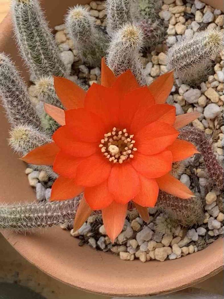 初めてのサボテンのお花、オレンジだったねんだね❣️ おめでと〜(*'ω' 👏 パチパチ☆彡