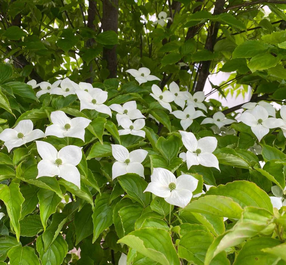 シンボルツリーとして植えたヤマボウシは大きく育ちました。