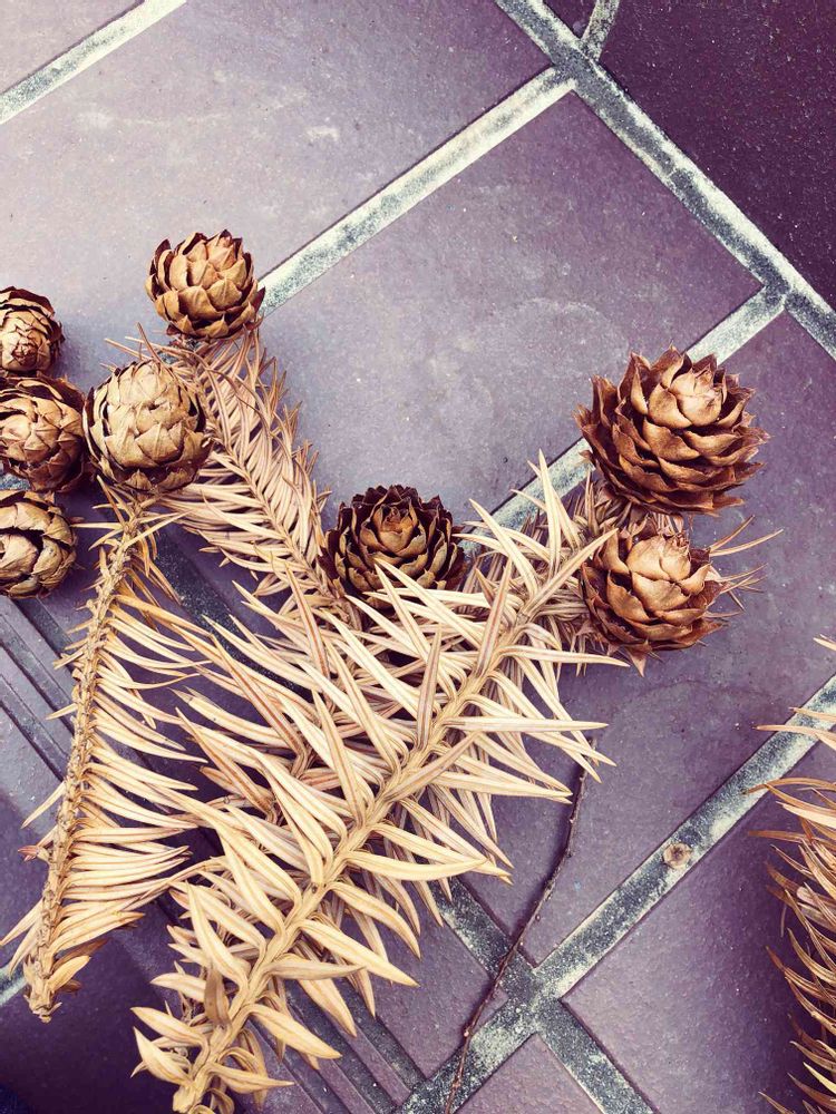 高木で、針葉樹っぽい感じで、先端の実は小さめの松ぼっくりに似ています👀松ぼっくりをもっと密にした感じでしょうか。