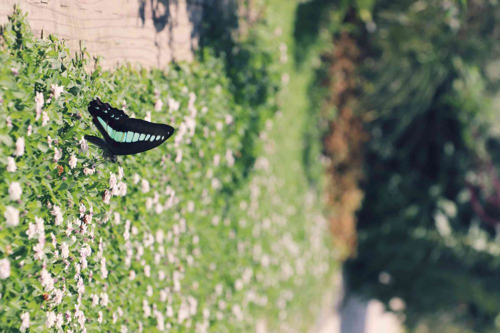 アオスジアゲハが蜜を吸いに、小さい花の間を行ったり来たり、忙しそうにしていました😊