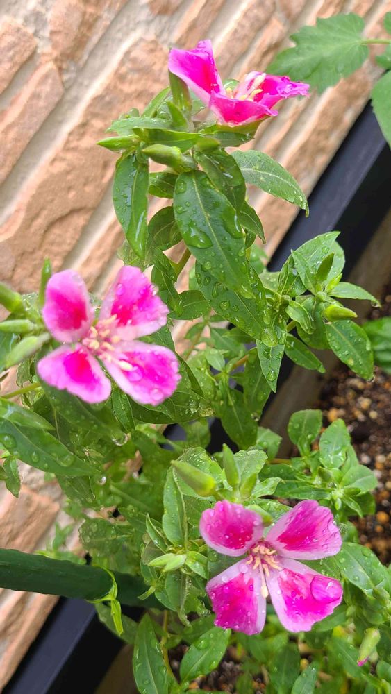 日当たり悪い場所に、発芽してから、植え付けが遅れたせいも、あり元気がなかったゴデチア。