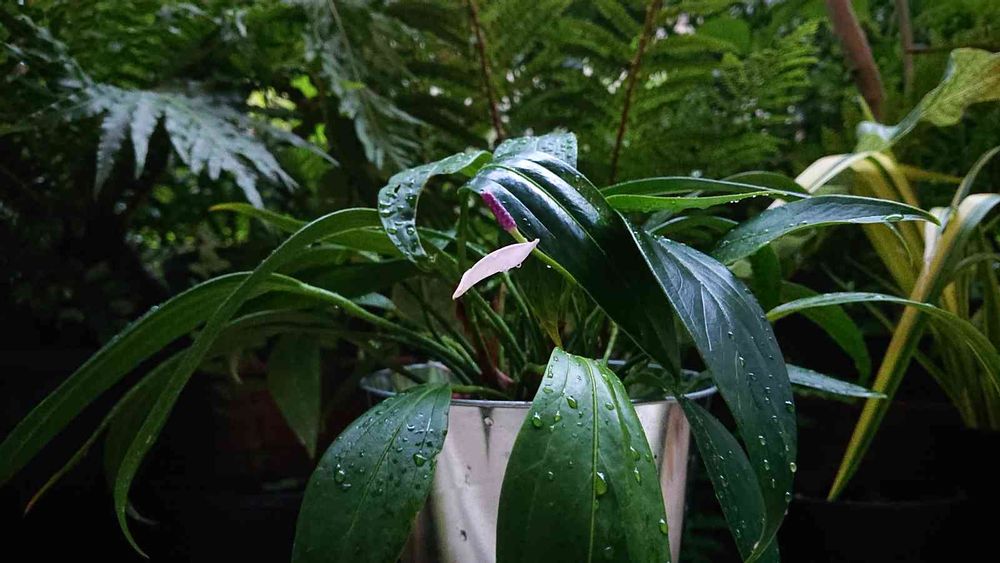 葉っぱがよく育ったアンスリウムですね🤗 薄紫のお花初めて拝見しました🍀