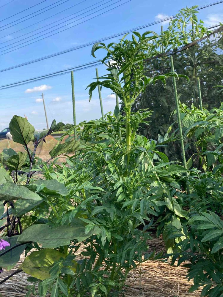 コンパニオンプランツとして種から育てたアフリカン種のマリーゴールド。