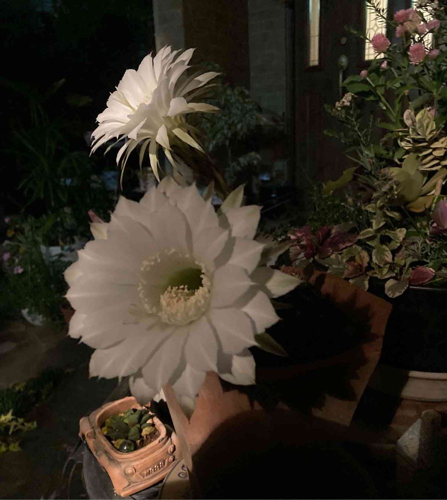 エキノプシス、コノフィツム、難しいお名前だね🌵同じのでも昼咲いたり夜咲いたり色々有るんだね、直ぐしぼむのに、夜は困る⤵️