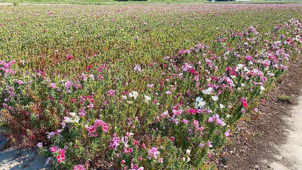 気温30度を越える日が連日続き、流石にゴデチアの花畑もピークを終えて枯れてきました。