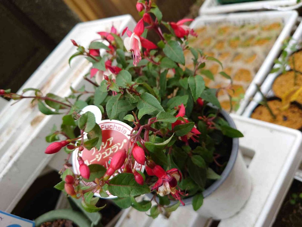 YouTube動画のおにちゃんねるの井上店長?がフクシアが好きだそうで、店長さんの見た目とは反したキャラと可愛い寄せ植えが好きで、私もフクシア好きになりました(笑)