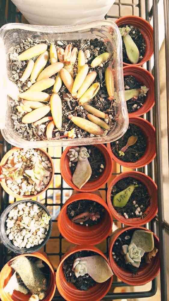 初めは外に置いといたんですが、みなさん葉挿しは室内管理のようなので、室内に入れました。春にはチマチマ寄せしてみたいな😃