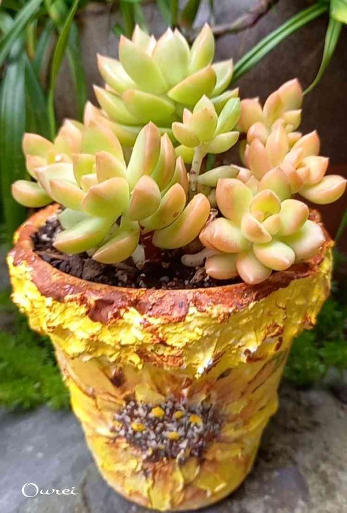 トワさん作家に頂いたリメ鉢に植え替えしました