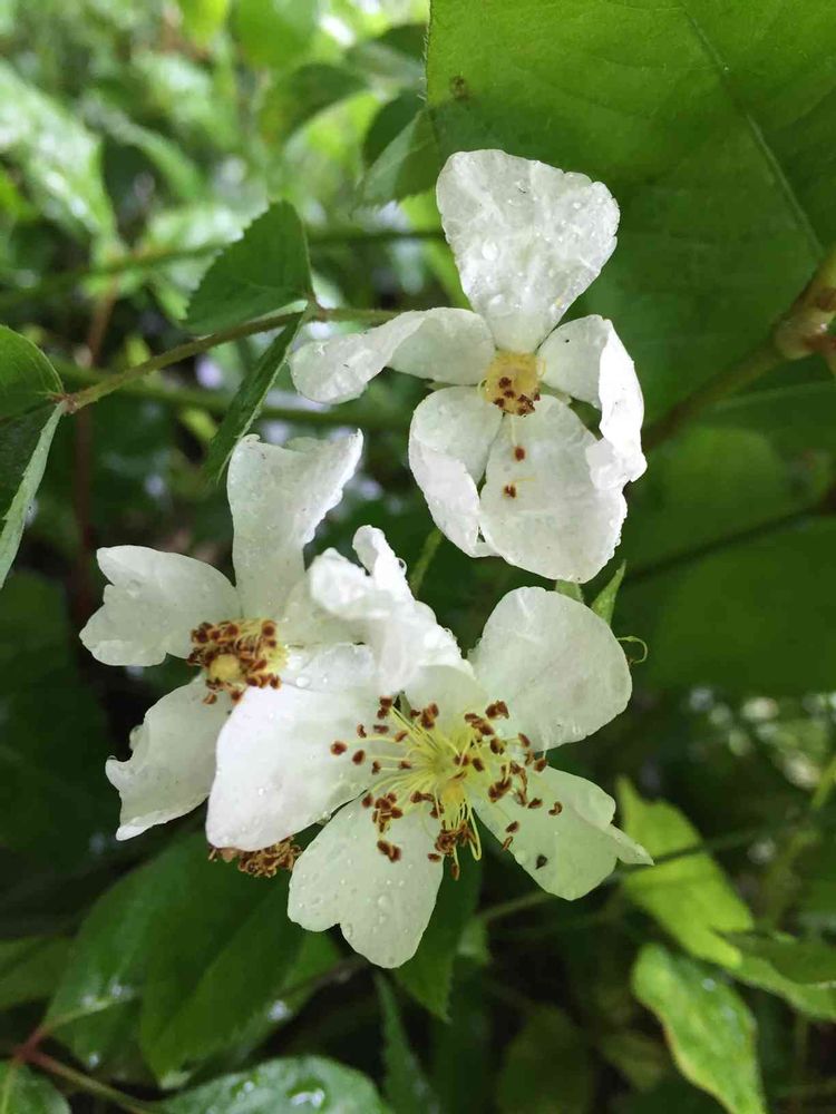 雨の中、近くの山にハイキング♪。楚々と咲いたノイバラ発見❗️英名が、Japanese roseというのもなんだかとても似合っています。花言葉は、素朴な可愛らしさ 、優しい心…。この花言葉も良いですね💕