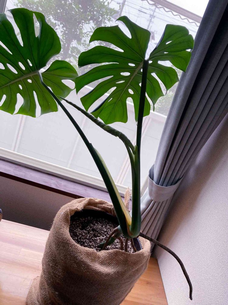 2ヶ所にあるモンステラさん、同時期に気根が伸び始め、今期初の新芽も出てきました🌱