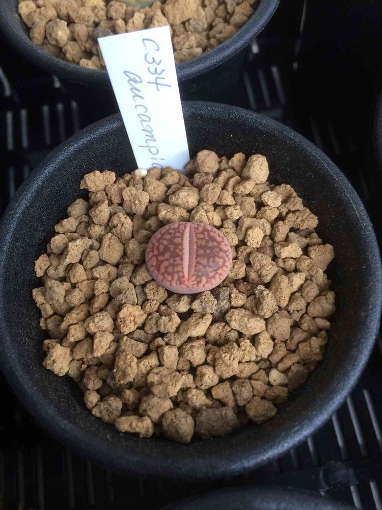 日輪玉C334、ワインレッドの日輪玉です。私が所有するリトープスは地味な個体が多いのですが、このC334が今のところ唯一の例外になります。