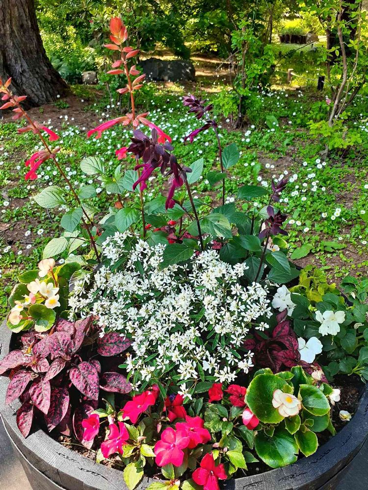 広い花壇には今殆んどお花が植えられていません。小さなプランターの中でところ狭しと咲いているお花さん達が元気に、一生懸命出迎えてくれました。